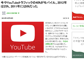 今やYouTubeトラフィックの40%がモバイル。2012年は25%、2011年には6%だった