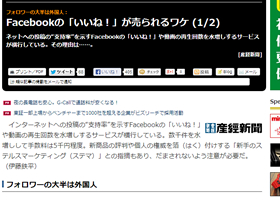 インターネットへの投稿の“支持率”を示すFacebookの「いいね!」や動画の再生回数を水増しするサービスが横行している。数千件を水増しして手数料は5千円程度。新商品の評判や個人の権威を箔(はく)付けする「新手のステルスマーケ...
