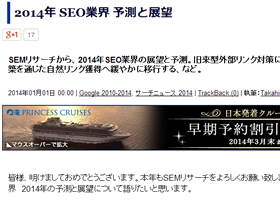 SEMリサーチから、2014年SEO業界の展望と予測。旧来型外部リンク対策に別れを告げて、ソーシャル時代にあった関係性構築を通じた自然リンク獲得へ緩やかに移行する、など。皆様、明けましておめでとうございます。本年もSEMリサーチ...