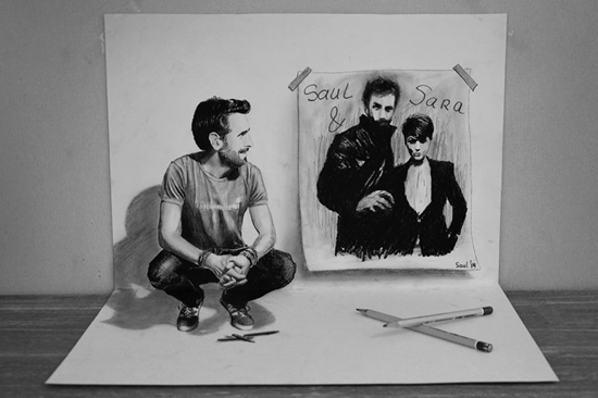 "Saul & Sara" - pencil on paper, photograph from an angle.