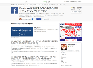 Facebookのエッジランクとは?EdgeRank? Facebookのニュースフィードに表示される投稿を個人毎に決定する指標。「ハイライト」の“個々のユーザーにマッチした表示情報を選定するためのアルゴリズム”が「エッ...