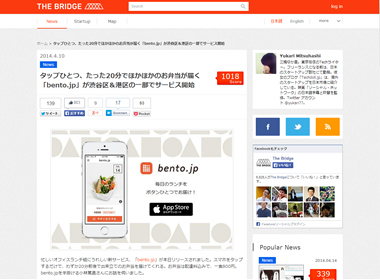 忙しいオフィスランチ組にうれしい新サービス、「bento.jp」が本日リリースされました。スマホをタップするだけで、わずか20分前後で出来立てのお弁当を届けてくれる。お弁当は配達料込みで、一食800円。ben...
