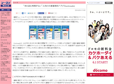 書籍キュレーションサービス大手の情報工場は、話題の書籍を1冊あたり1200文字に要約し、約3分で読めるスマートフォン向けアプリ「Quickreads(クイックリーズ)」の提供を開始する。対応環境はiOS 6.0以降/Android 2.3以上の...
