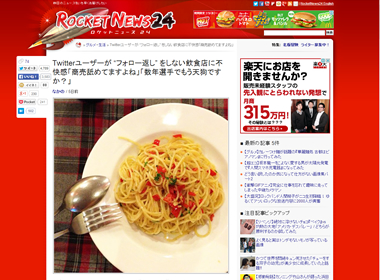 最近は Facebook や Twitter などのSNSが普及し、知り合い同士だけでなく他人や有名人などとも繋がることができるようになった。SNSの利用者が増加し影響力が拡大するにしたがって、小さな話かもしれないが、飲食関連でもトラ...