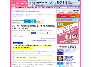 広報マーケティングやWEB担当者さん、中小企業の社長さんにオススメしたい、必読すべき今週の注目エントリーをご紹介。トピック:リピーターの利用行動を把握して、サイトの改善に活かすには?