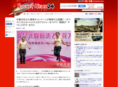 中国の乳がん啓発キャンペーンが斬新だと話題に / オジサン10人がパッド入りのブラジャーをつけて “縄跳び” や “モップがけ” を行う