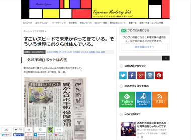 内視鏡手術支援ロボット「ダビンチ」を使った胃がん手術が、保険適応になったって記事。人間の医者が実施するよりも、手術後の合併症が5分の1に激減する。理由は手ぶれが防止できるため。人間よりもより安全な手術...
