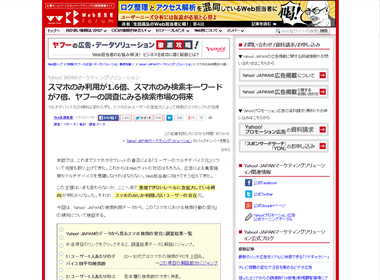 スマホのみ利用が1.6倍、スマホのみ検索キーワードが7倍、ヤフーの調査にみる検索市場の将来
