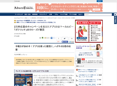 手軽さが決め手!アプリを使った懸賞に、ハガキの2倍の応募 前年同期比130%(2014年9月)と売り上げ好調の「ポテリッチ」は、さらなる販売拡大のためクローズドキャンペーンを実施。応募をハガキだけでなく、アプ...