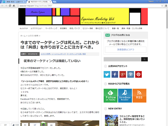 従来のマーケティングは機能していない 今日は大阪産業創造館でセミナーをしました。4階のホールが満員でした。席が260なのですが、ほかにも少し増やしていた。「ソーシャルメディア時代 激変する環境に...