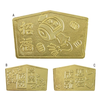 白いタオルを絵馬の形に圧縮し、金色の箔で包装しました。招福・学業成就・恋愛成就の3柄からお選びいただけます。 FT(中国) [日本製]