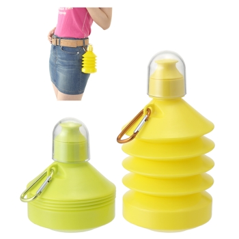 レジャーに、ハイキングに、非常用に! 収納便利なジャバラ式水筒! 飲み口はワンタッチ開閉。カナビナ付きで持ち運びに便利です。 小さくたためるので携帯バツグン!