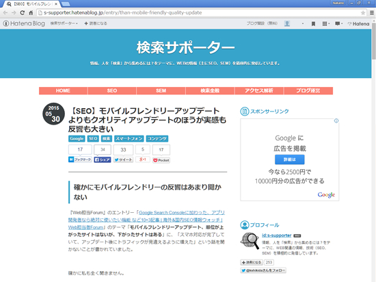 【SEO】モバイルフレンドリーアップデートよりもクオリティアップデートのほうが実感も反響も大きい