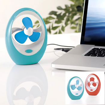 やわかい羽で安心安全!電源とUSBの2WAYでどこでも使えるデスクファン。ブルー・レッド 2色取混ぜ。 USBケーブル付、単四乾電池3本使用(別途)