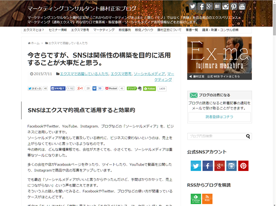 SNSはエクスマ的視点て活用すると効果的 acebookやTwitter、YouTube、Instagram、ブログなどの「ソーシャルメディア」を、ビジネスに活用していますか。ソーシャルメディアが進化して普及している時代..