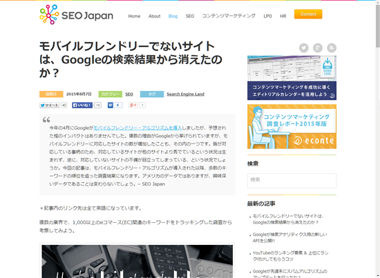 今年の4月にGoogleがモバイルフレンドリー・アルゴリズムを導入しましたが、予想された程のインパクトはありませんでした。複数の理由がGoogleから挙げられていますが、モバイルフレンドリーに対応したサイトの数が...