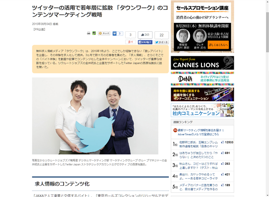 ツイッターの活用て若年層に拡散 「タウンワーク」のコンテンツマーケティンク戦略