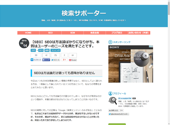 SEOは方法論だけ語っても意味がありません 今日はいつものWEB関連の新しい情報の考察ではなく、SEOとしてよく語られる方法、一般論として論じられている3つの方法について、私なりの考察をまとめてみたいと思い...
