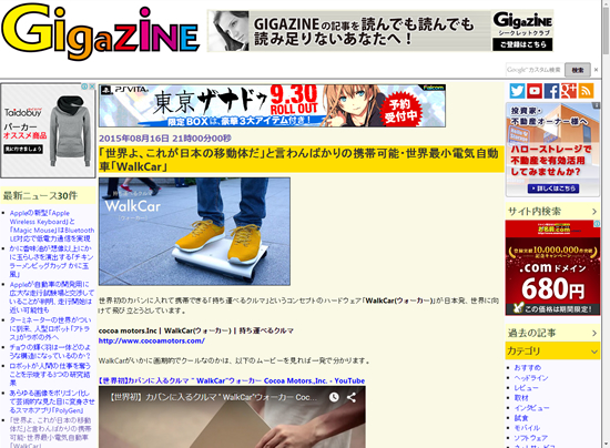 「世界よ、これが日本の移動体だ」と言わんばかりの携帯可能・世界最小電気自動車「WalkCar」
