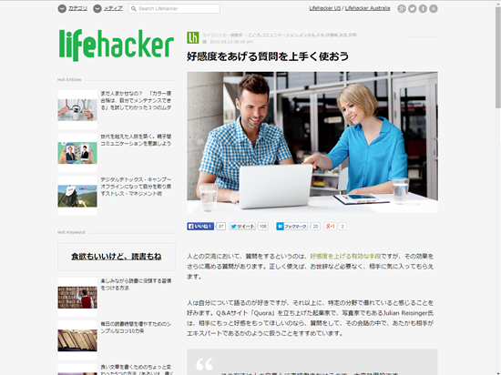 人との交流において、質問をするというのは、好感度を上げる有効な手段ですが、その効果をさらに高める質問があります。正しく使えば、お世辞など必要なく、相手に気に入ってもらえます。人は自分について語るのが好き...