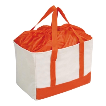 自転車カゴに入るショッピング。アルミ内張りなので、保冷・保温効果があります。2Lペットボトルが6本収納可。 2リットルペットボトル6本収納 取説
