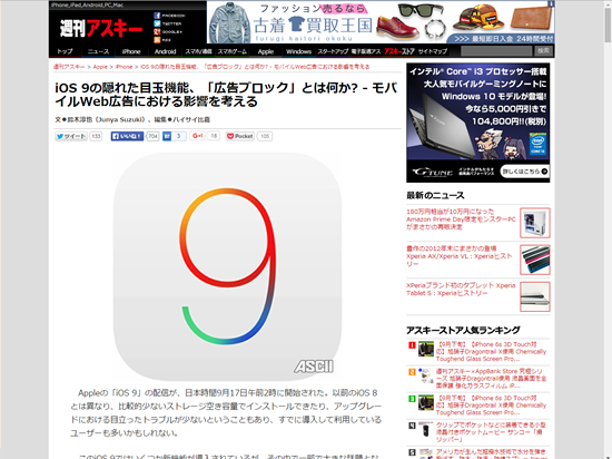 iOS 9の隠れた目玉機能、「広告ブロック」とは何か? - モバイルWeb広告における影響を考える