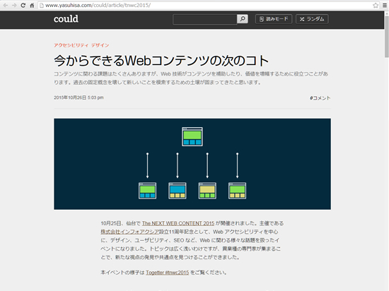 コンテンツに関わる課題はたくさんありますが、Web 技術がコンテンツを補助したり、価値を増幅するために役立つことがあります。過去の固定概念を壊して新しいことを模索するための土壌が固まってきたと思います。 10月25...