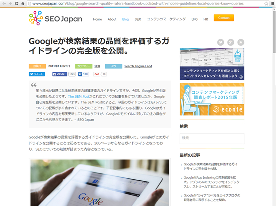 度々流出が話題になる検索結果の品質評価のガイドラインですが、今回、Googleが完全版を公開したようです。The SEM Postがこれについての記事をあげていましたが、Google自ら完全版を公開しています。The SEM Post...