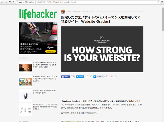指定したウェブサイトのパフォーマンスを測定してくれるサイト「Website Grader」