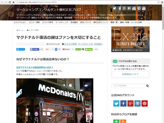 ボクの本のことも紹介してくれていて、マクドナルドは何を売っているのかがどんどん世の中の人に伝わらなくなってしまっている、という旨のことが書いてありました。他にもさまざまな角度から、他の飲食チェーンの...
