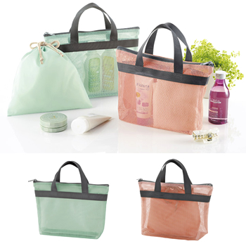 スポーツジムや温浴施設で小物の持ち運びに便利。 ピンク・ブルー 2色取混ぜ。