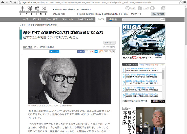 松下幸之助のそばについて7年目ぐらいの頃だった。西宮の家の茶室で2人でお茶を飲んでいた。当時の私はまだまだ緊張しており、松下の隣でじっとしていた。それまでわりとやさしく話しかけてくれていた松下が、そのときは...
