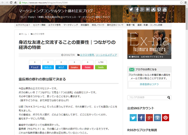 霊長類の群れの数は脳で決まる 今日は東京のエクスマセミナーです。ボクの新しい本『「つながり」で売る!7つの法則』の出版セミナーです。その中で話そうかなって、思っていることを少し書きます。(話すかどうかは、ま...