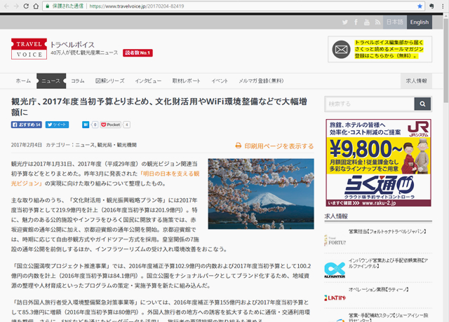 観光庁、2017年度当初予算とりまとめ、文化財活用やWiFi環境整備などで大幅増額に