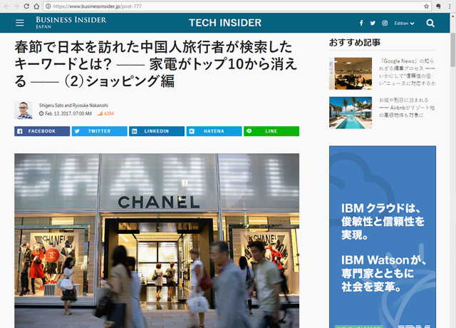 春節で日本を訪れた中国人旅行者が検索したキーワードとは? ---- 家電がトップ10から消える ---- (2)ショッピング編