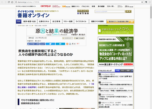 飲食店を全面禁煙にすると人々の健康や店の売上はどうなるのか