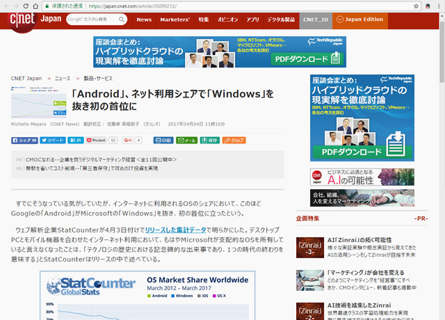 「Android」、ネット利用シェアで「Windows」を抜き初の首位に