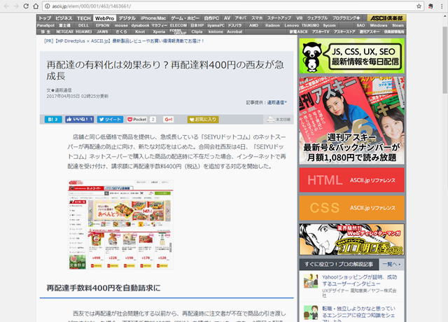 店舗と同じ低価格で商品を提供し、急成長している「SEIYUドットコム」のネットスーパーが再配達の防止に向け、新たな対応をはじめた。合同会社西友は4日、「SEIYUドットコム」ネットスーパーで購入した商品の配送時に不在だった場合、インターネットで...