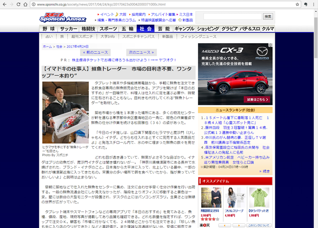 【イマドキの仕事人】鮮魚トレーダー 市場の目利き不要、ワンタップ“一本釣り”