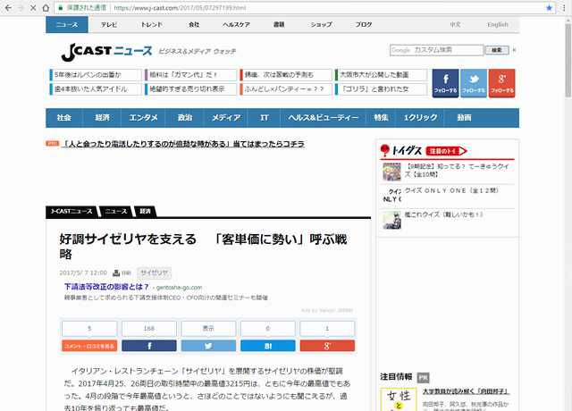 イタリアン・レストランチェーン「サイゼリヤ」を展開するサイゼリヤの株価が堅調だ。2017年4月25、26両日の取引時間中の最高値3215円は、ともに今年の最高値でもあった。4月の段階で今年最高値というと、さほどのことではないようにも聞こえるが、過去...