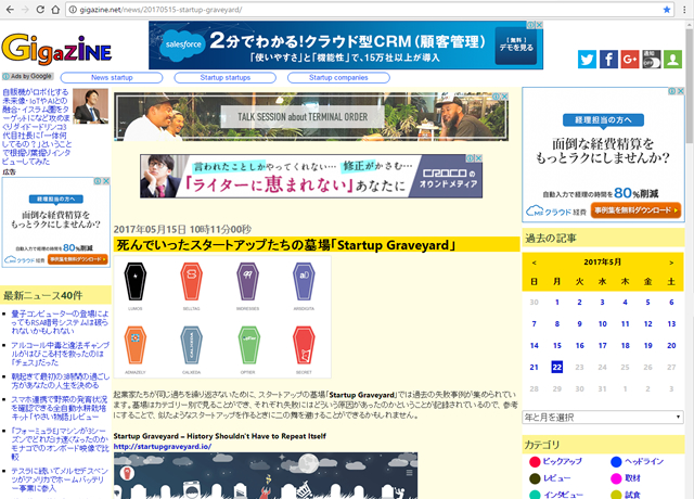 起業家たちが同じ過ちを繰り返さないために、スタートアップの墓場「Startup Graveyard」では過去の失敗事例が集められています。墓場はカテゴリー別で見ることができ、それぞれ失敗にはどういう原因があったのかということが記録されているので、...