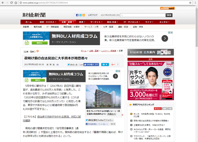 5月中旬に観光庁は「(2017年の)訪日外国人観光客が、過去最速で1,000万人を突破」と発表した。これを受ける形で、みずほ総研はこう試算した。「2020年の訪日客数が4,000万人に達する(これまで観光庁の計画では2,000万人だった...