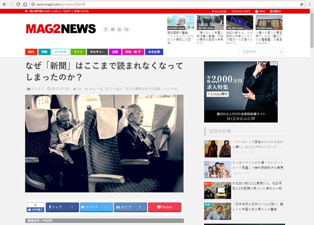 メルマガ読者からの質問に、敏腕コンサルの永江一石さんが回答してくれる人気メルマガ『永江一石の「何でも質問&何でも回答」メルマガ』。今回のメルマガ読者さんからの質問は、ズバリ「新聞社に未来はあるのか?」です。スマホの普及により...
