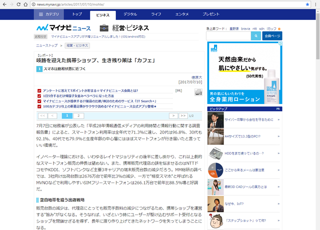 月7日に総務省が公表した「平成28年情報通信メディアの利用時間と情報行動に関する調査報告書」によると、スマートフォン利用率は全年代で71.3%に達し、20代は96.8%、30代も92.1%、40代でも79.9%と生産年齢の中心層にはほぼスマートフォンが行き届...