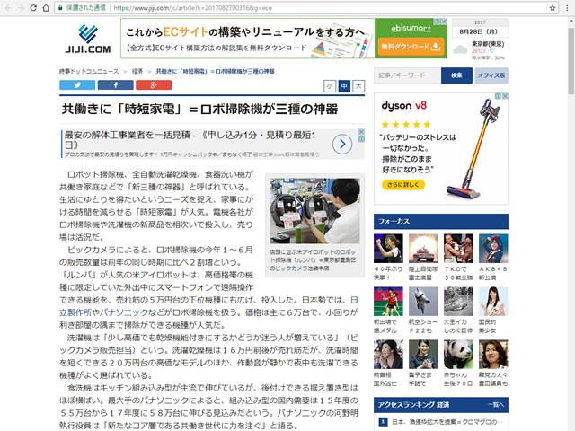 共働きに「時短家電」=ロボ掃除機が三種の神器
