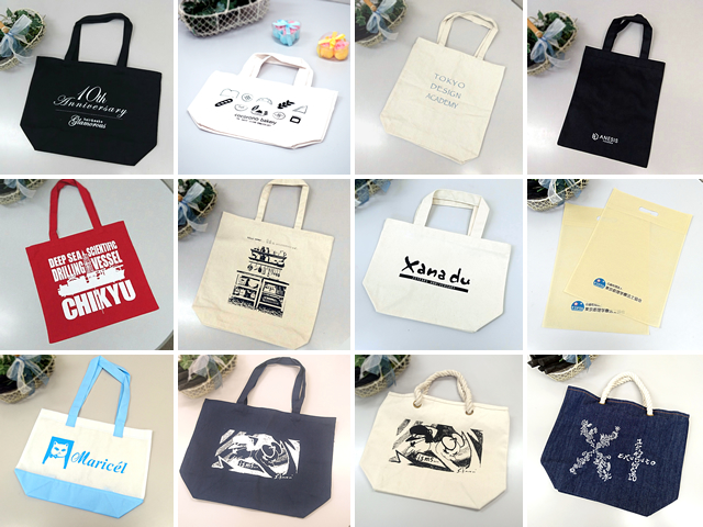 ノベルティといえばエコバッグ!という方も多いはず。飲食店やサロンの開店記念でご利用されたり、イベントや展示会などで活躍したり、用途の幅は広くとても汎用的です。2016年に納品された制作事例よりエコバッグをピックアップしてご紹介、今回は後編です。