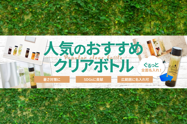 ボトルの需要が高まる水分摂取の機会が多い夏におすすめのクリアボトルをご紹介します。繰り返し使えるクリアボトルは、ペットボトル等のプラスチックゴミ削減にもつながりSDGsに貢献できる商品です。