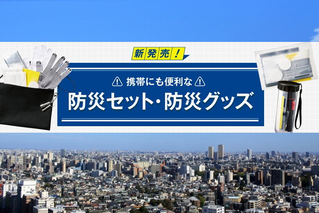 備蓄品にも、記念品にも、ノベルティにもご利用用途が幅広い防災グッズに新商品の防災セットが登場!人気の商品とともに夏~秋の台風シーズンに発生する大雨に対する防災準備に提案です!オリジナル名入れも可能!