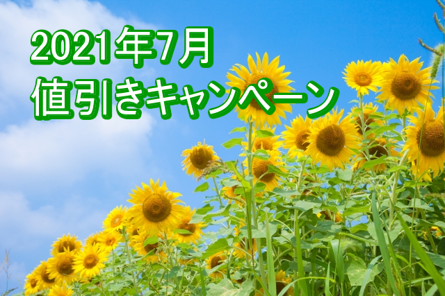 今月の値引きキャンペーンは、夏本番に向けて夏ノベルティからも多数ピックアップ!今年は梅雨が長くなるとの予報に人気の傘も追加しました。今年の梅雨と夏を乗り越えるお手伝いを!値引き期間は2021年6月30日まで。