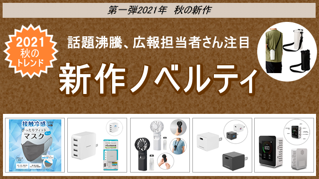 2021年秋の第一弾新作ノベルティはまだまだ需要のあるコロナ・暑さ対策グッズ、在宅ワーク関連商品が多数追加!コロナや暑さも新作ノベルティで対策ばっちりです!晩夏から初秋の販促にお役立てください。